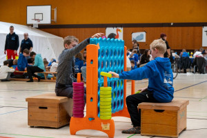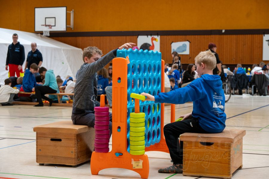 Doch auch abseits des Beckens wurde einiges geboten. Der Programmbereich überzeugte mit einer Vielzahl an Aktionen und Exkursionen. Ob bei einer Besichtigung des Celler Schlosses oder beim Kartfahren – für Jede*n war etwas dabei. Zudem luden im Programmbereich verschiedene Informationsstände zum Entdecken und Austauschen ein. Themen wie queersensible Jugendarbeit oder die Arbeit der Polizei wurden anschaulich präsen_ert – letztere sogar mit einer VRBrille, die spannende Einblicke ermöglichte. Auch die IdeenExpo war mit Informationsmaterial vertreten. Egal ob groß oder klein: Der Programmbereich bot Unterhaltung, Wissen und jede Menge Spaß. Eine absolut gelungene Aktion war – wie jedes Jahr – die große Hüpfburg, die durchgehend gut besucht war.